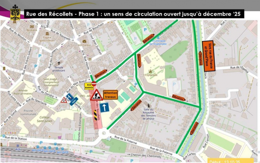 Le chantier devrait ensuite reprendre en janvier, avec Ipalle pour l’égouttage, pour se clôturer avec le réaménagement de la voirie et des trottoirs pour le compte de la Ville d’Ath. (les dates exactes et modalités de circulation seront communiquées dès que connues)