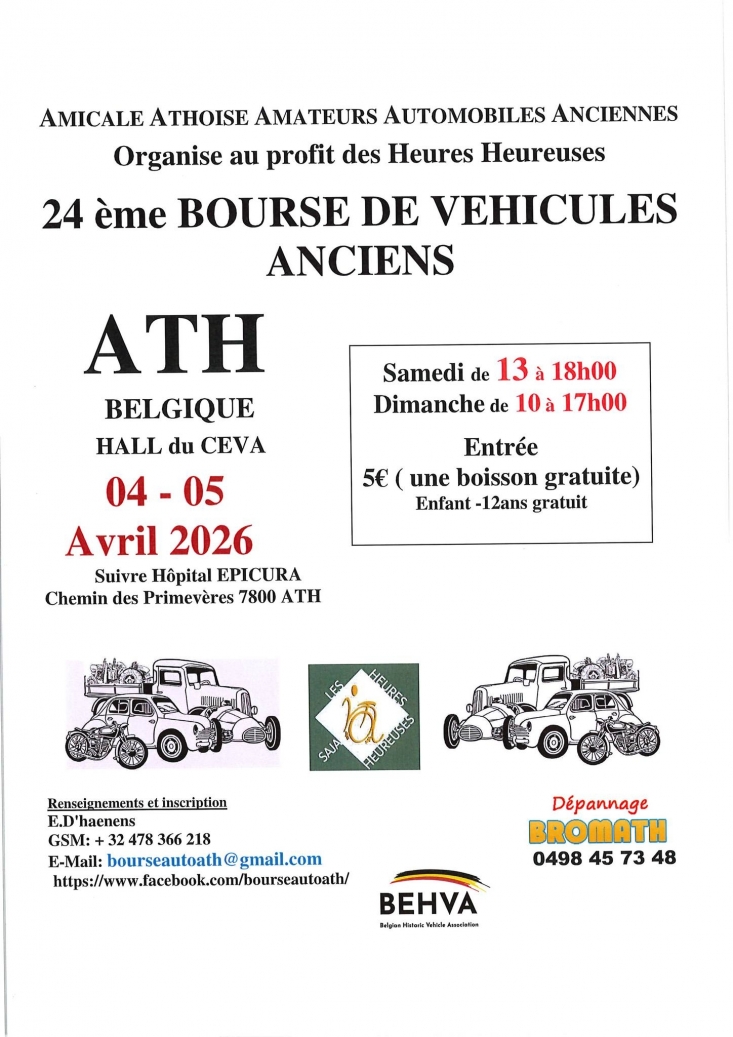 La 24ème édition de la bourse aux véhicules anciens se déroulera le samedi 04 et dimanche 05 avril 2026 au Hall du CEVA.