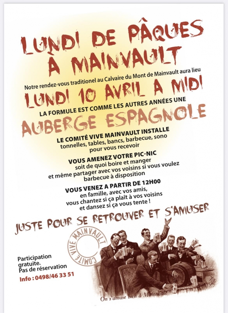 Réservation obligatoire au 0485/421.163. Entrée adulte : 8€ en prévente et 9€ sur place. Entrée enfant jusque 12 ans : 4€