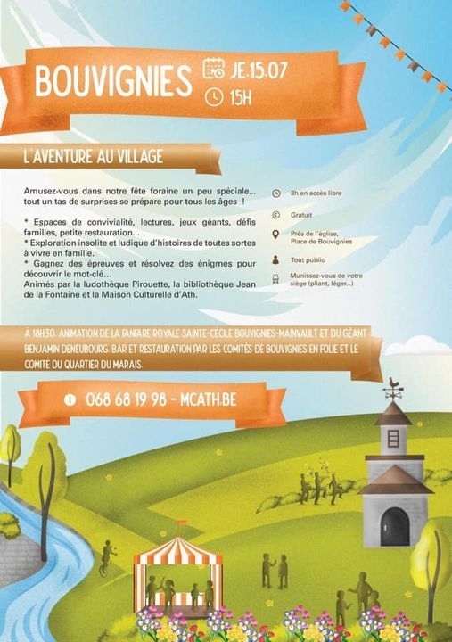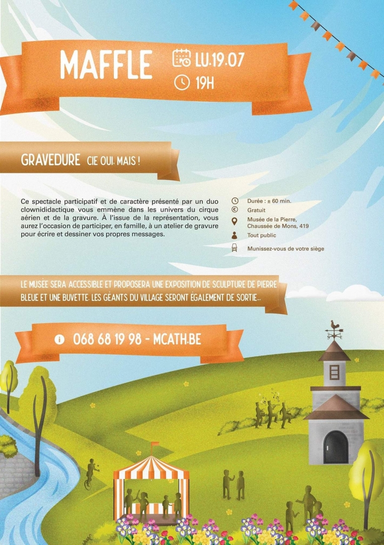 18h30 : exposition et prestation des géants sur le site du musée de la pierre à l’occasion des « Échappées Estivales », spectacle organisé par la Maison Culturelle d’Ath.