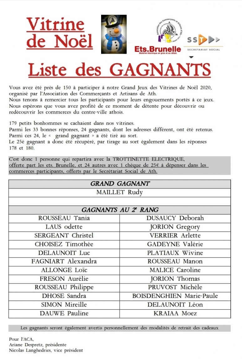 Ath: On connait les gagnants du concours de la vitrine de Noël