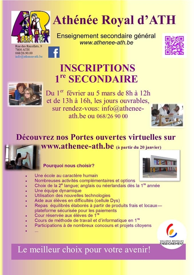 Ath: Les inscriptions scolaires vont débuter au 1er février